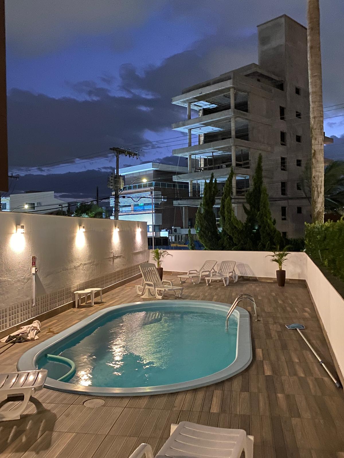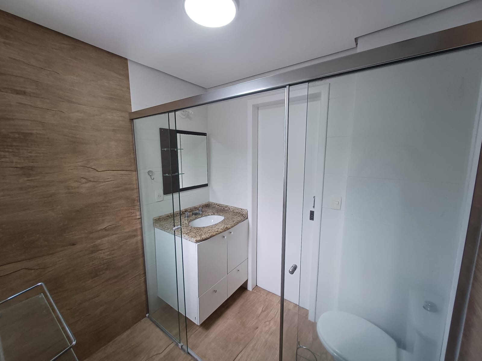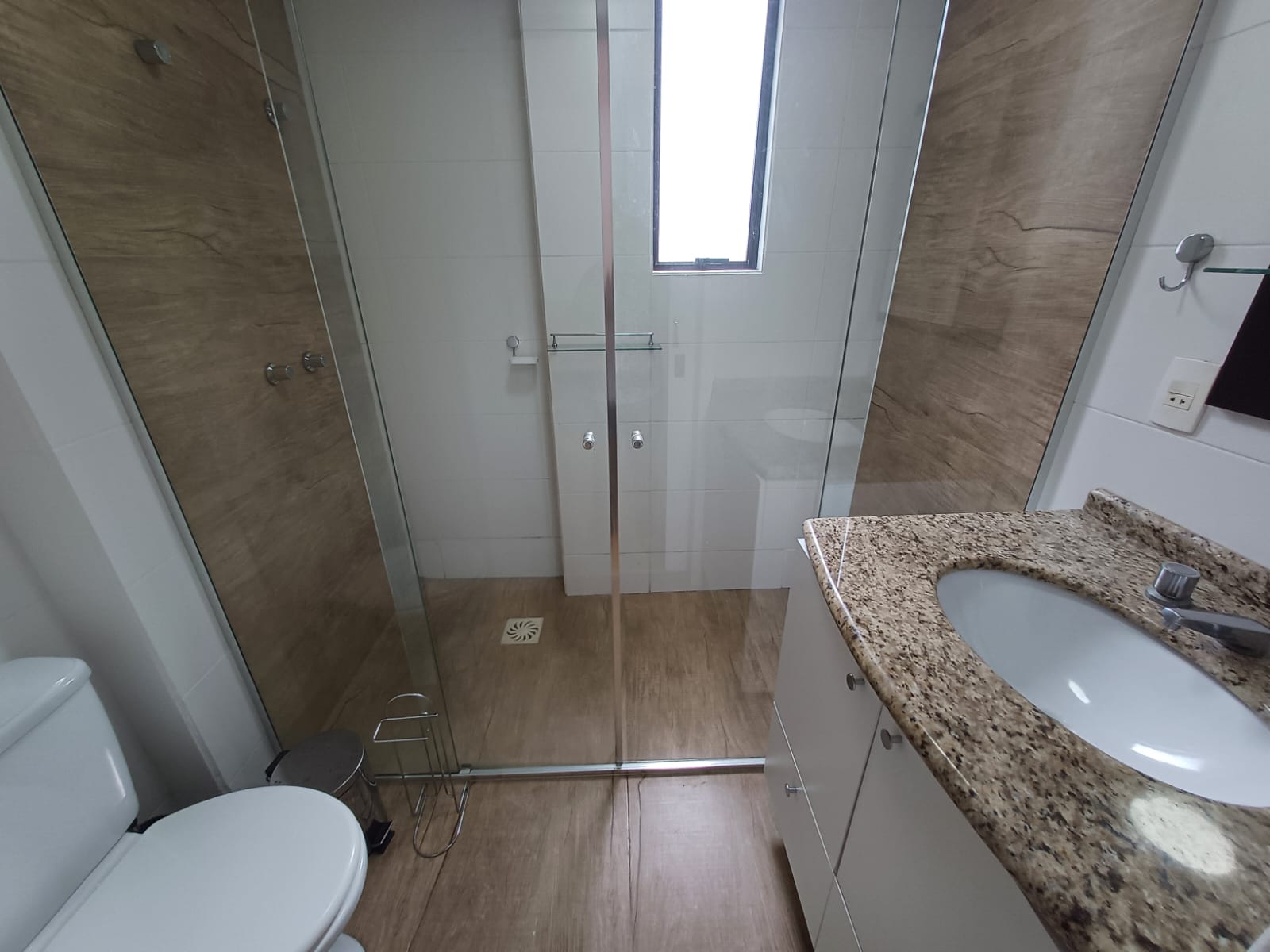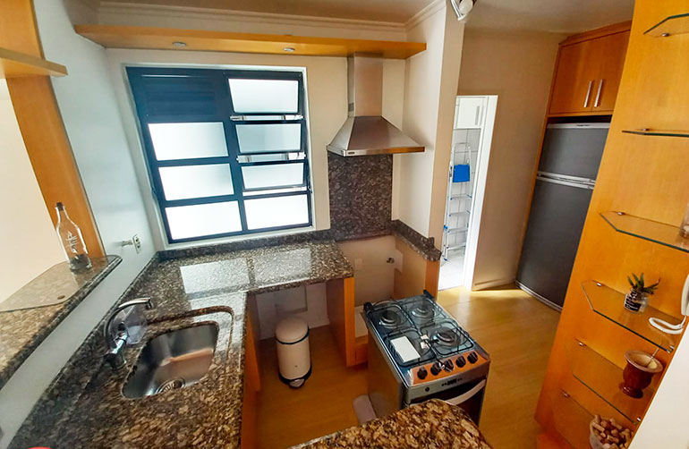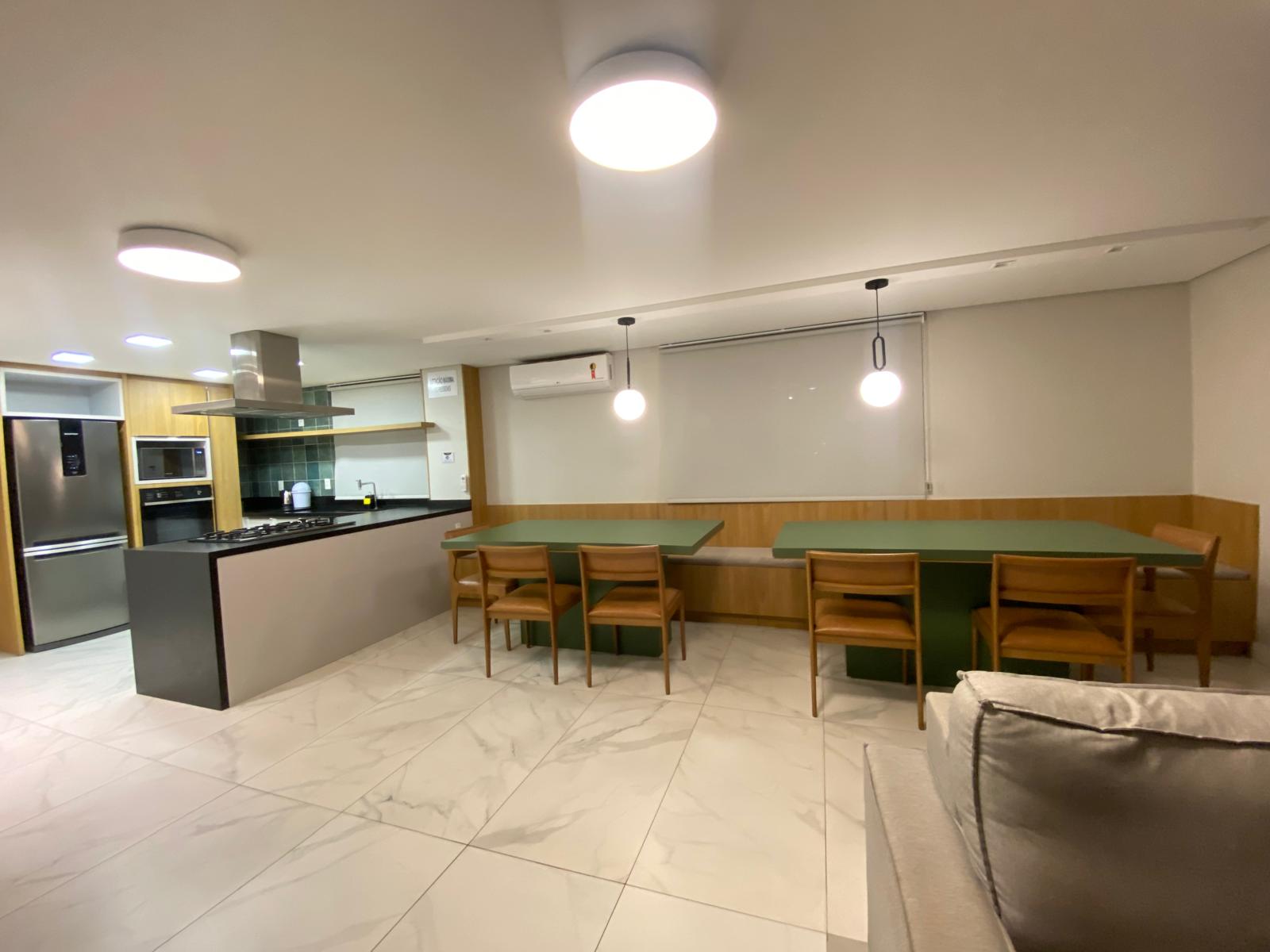 O imóvel conta com móveis planejados na cozinha, quartos, banheiros e lavanderia. A cozinha está equipada com geladeira e fogão, e um dos dormitórios possui ar-condicionado split.