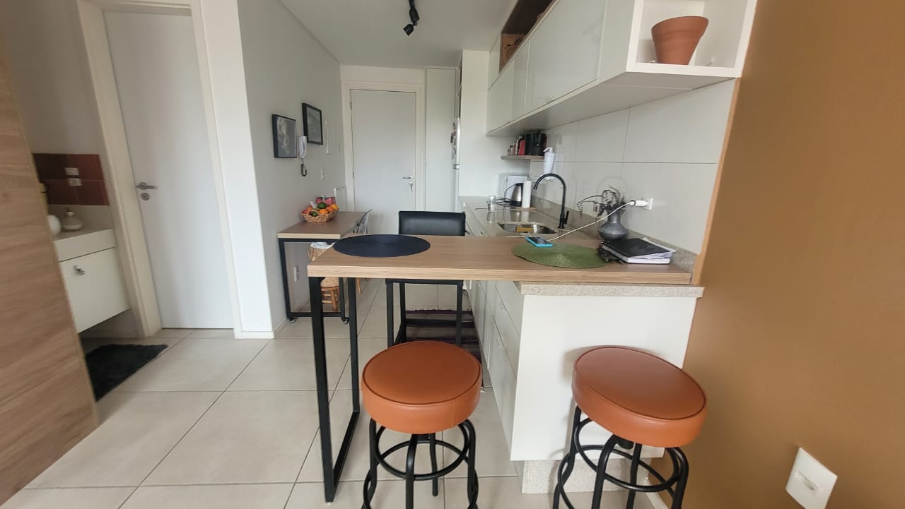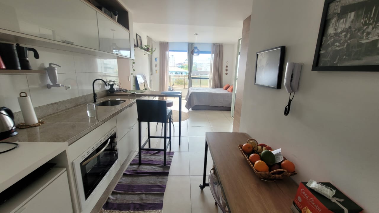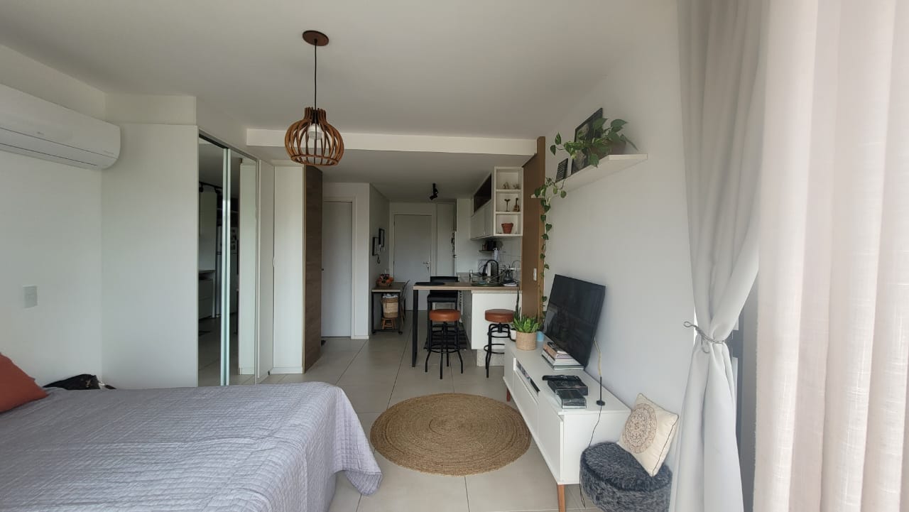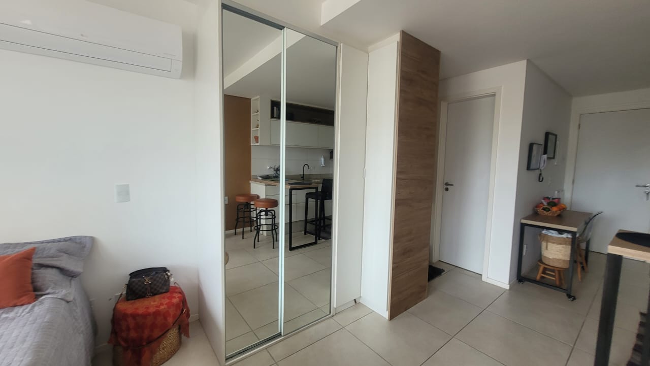 Lindo estudio montado,com armarios embutidos,ar-condicionado,cama,mesa.