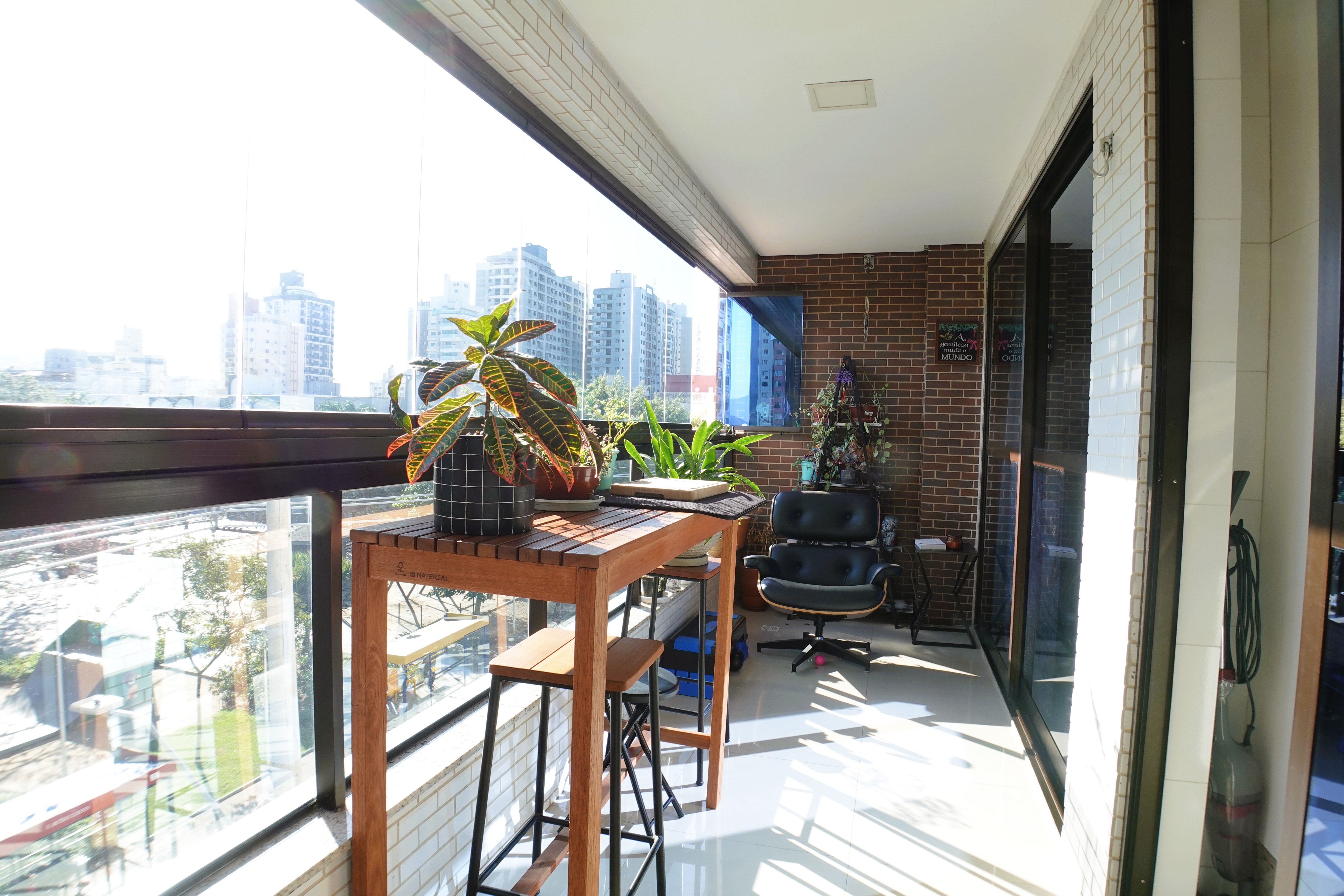 - Sacada com churrasqueira a carvão, fechada com vidro.